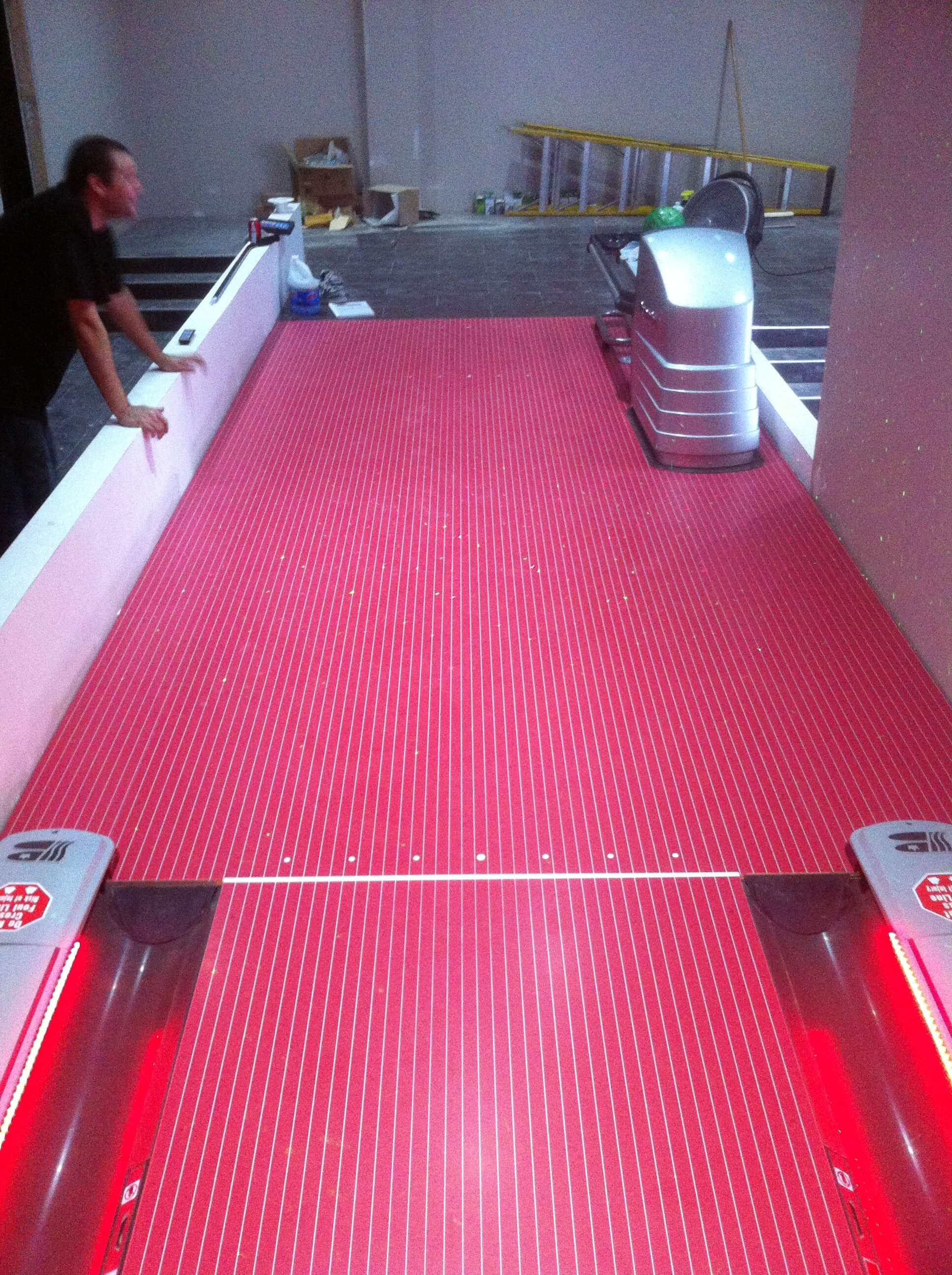 Hip hop artist Lil’ Wayne requested a solid red bowling lane with red LED gutter accent lighting in YMCMB's ultra-modern recording studio/skate park facility.