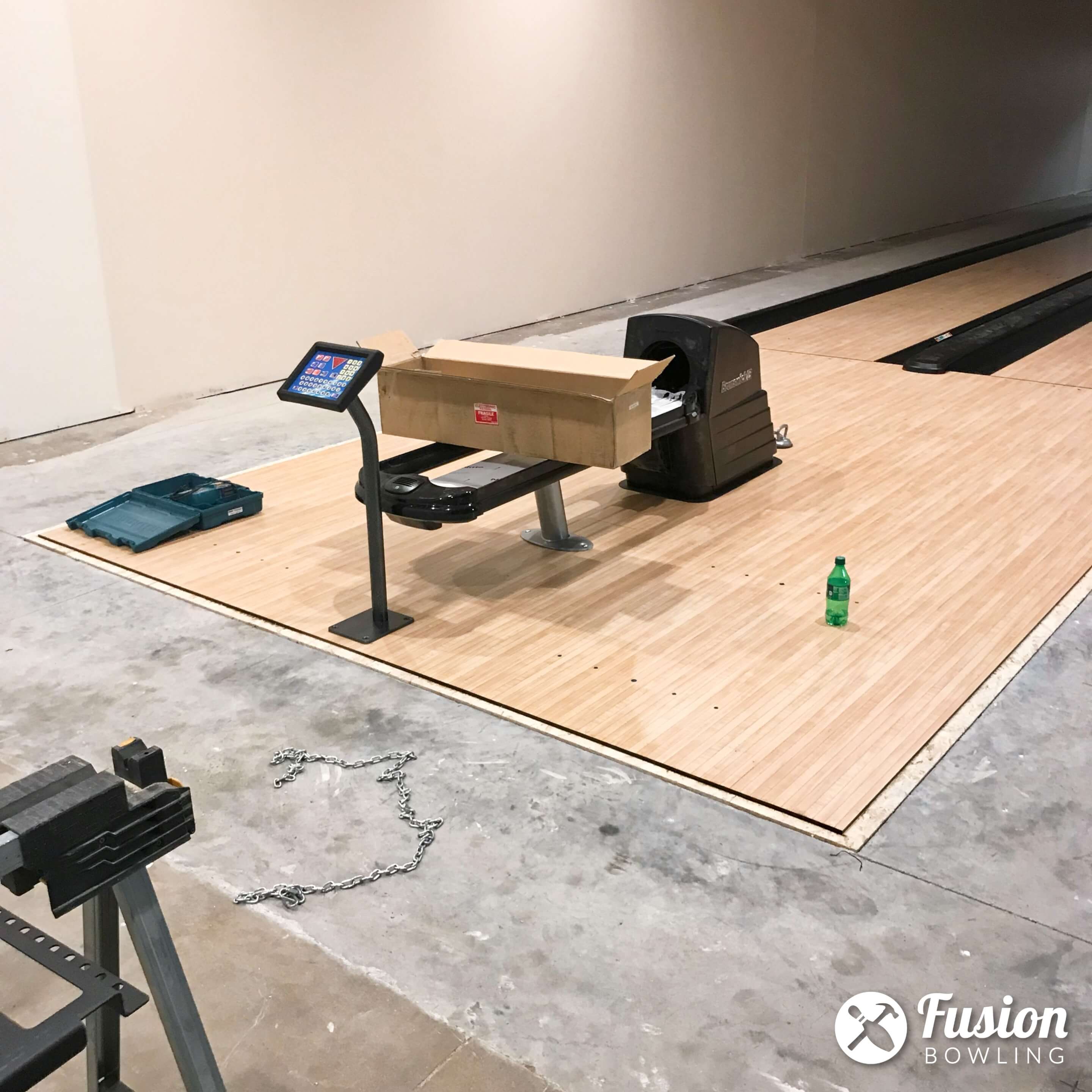 Turn5 is a growing Pennsylvania company near Philadelphia that wanted a fun "break room" amenity for their corporate office employees. Turn5 hired Fusion Bowling to build their custom lanes in a recessed concrete slab which resulted in a flush flooring transition.